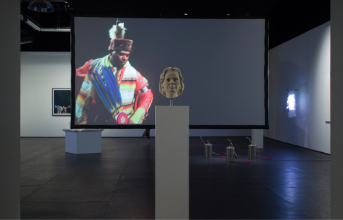 The Kitchen commisioned this video work for inclusion in the group exhibition, On Whiteness, organized by the Racial Imaginary Institute. The single channel video shows Bronx-based artist Dennis Redmoon Darkeem dancing in an empty theatre, intercut with his statements on his experience identifying as Yamassee Yat’siminoli. The intent of this work is to subvert expectations and ask the questions of Who is allowed to be Native? What is half/part Native?